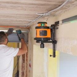 L'auto-nivellement instantané rend ce laser idéal lorsque les applications nécessitent des changements de position fréquentes. - Auto-nivellement très rapide. - Laser rotatif automatique horizontal; manuel à la verticale, se règle avec une molette. - En dehors de la plage d'auto-nivellement, arrêt automatique avec signal d'alarme. - Vitesse de rotation réglable. - Point d’equerrage permanent. - Batterie rechargeable avec chargeur intelligent. - Support de sol / mural avec sa molette de réglage.