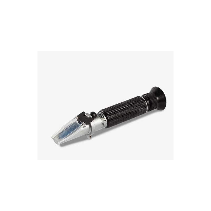 Le modèle Extech RF11 est un réfractomètre qui mesure la concentration de liquides industriels et de sucre dans les jus de fruits. Il est compact et facile à utiliser. Le modèle RF11 ne nécessite que 2 ou 3 gouttes de solution et fournit des mesures précises et reproductibles sur une échelle facile à lire. Prisme et objectif avec simple réglage de la focale et compensation automatique de la température de 10 °C à 30 °C (50 °F à 86 °F). Fourni avec un étui, un tournevis d’étalonnage, une pipette en plastique et une solution d’étalonnage.