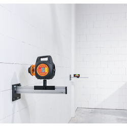 Les adaptateurs FCA-L pour le laser et FCA-E pour le récepteur seront fixés à la paroi. Le laser (axe de rotation) et le récepteur doivent être mis en place à la même distance de la paroi au moyen de la règle graduée en cm / mm intégrée aux deux adaptateurs.
