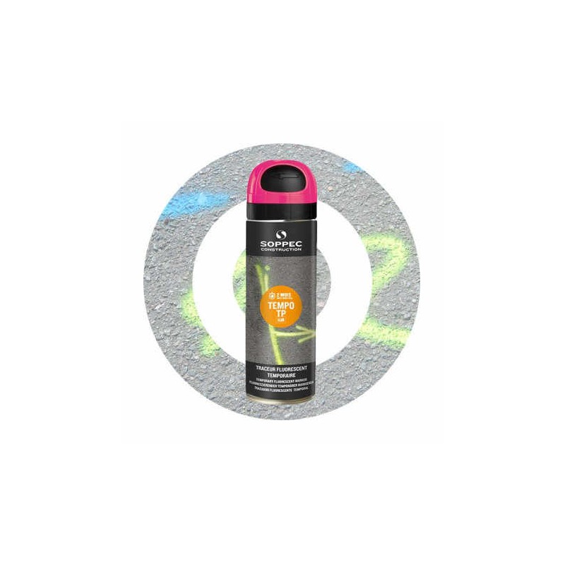 TEMPO TP est une bombe de peinture temporaire qui s’utilise pour les marquages qui ne doivent pas durer. Cette peinture de marquage au sol temporaire est particulièrement adaptée pour les marquages en milieu urbain ou sur sites classés ou protégés. la peinture de marquage TEMPO TP est équipé du capot de sécurité breveté SOPPEC à la couleur de la peinture.